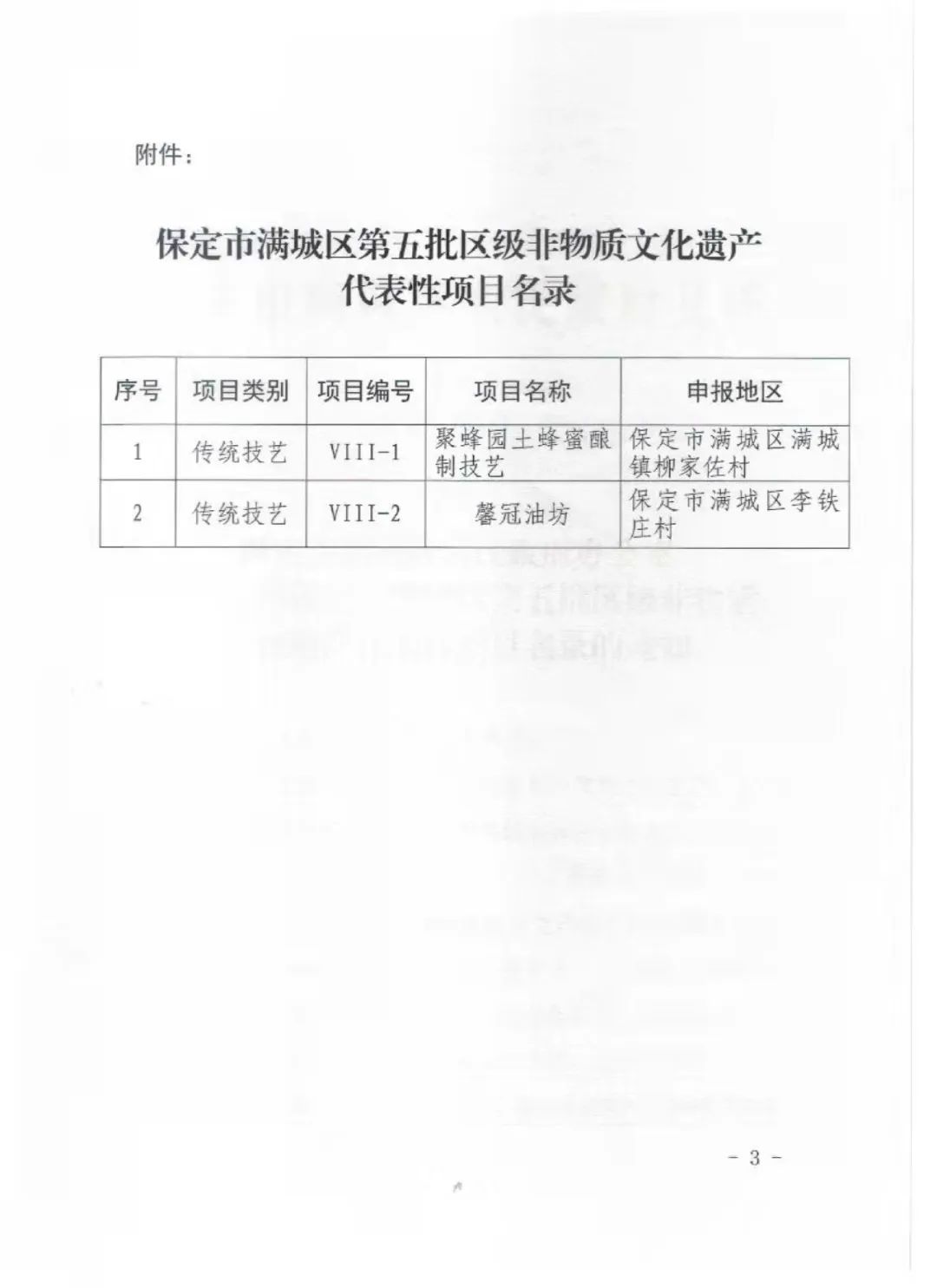 根據(jù)《中華人民共和國非物質(zhì)文化遺產(chǎn)法》《河北省非物質(zhì)文化遺產(chǎn)條例》有關(guān)規(guī)定,經(jīng)個人自愿申請、文化旅游行政部門逐級審核推薦、組織專家評議、社會公示等程序,認(rèn)定第五批滿城區(qū)非物質(zhì)文化遺產(chǎn)代表項目的有“馨冠油坊”、“聚豐園土蜂蜜釀制技藝”。